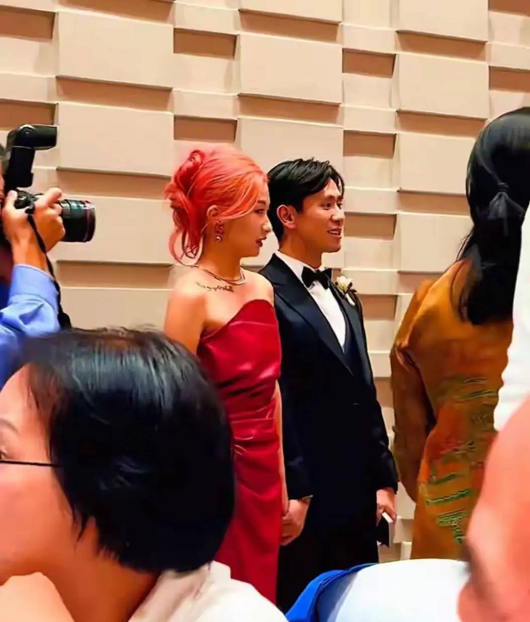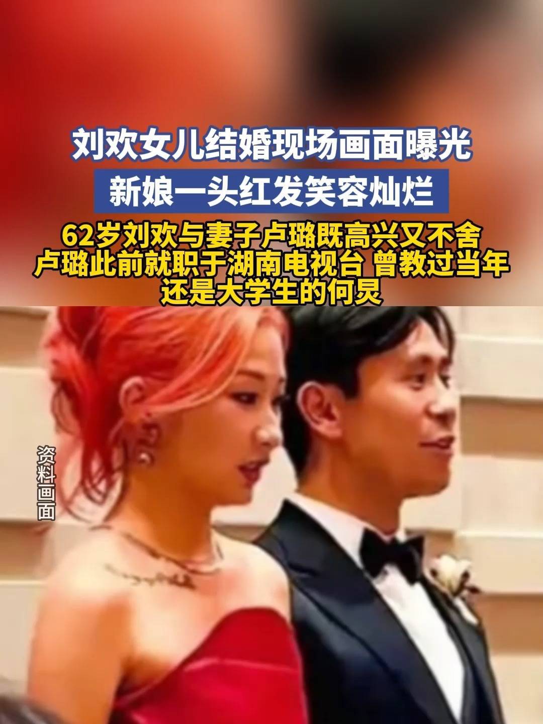 卢璐的状态让人格外惊艳。标志性的头巾包裹着岁月沉淀的优雅,一身正红礼服衬得她容光焕发。作为湖南台曾经的金牌主持,她见证过无数大场面,却在女儿交换戒指时悄悄红了眼眶。有细心的网友发现,她无名指上那枚银婚纪念戒指,和刘欢手上的款式一模一样——1988年那场简单的婚礼上,这对新人曾许下“一生只爱一个人”的诺言,三十七年过去,他们用行动诠释了什么是相濡以沫。席间,刘欢端着酒杯挨桌敬酒,遇到熟悉的老友时,总会笑着拍拍对方肩膀:“以后多关照我家女婿。”曾经那个在《中国好声音》导师椅上杀伐果断的音乐人,此刻浑身散发着“女儿奴”的柔光。有媒体拍到他偷偷抹眼泪的画面,随后又立刻整理领带恢复笑容——这个细节让无数网友破防:原来再强大的男人,在女儿出嫁时都会变回那个笨拙的父亲。